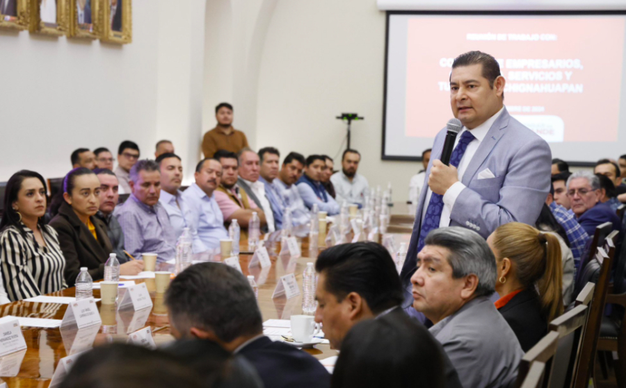 El gobernador electo Alejandro Armenta sostuvo una reunión con empresarios de Servicios y Turismo de Chignahuapan a quienes les señaló que impulsará el desarrollo integral de dicho municipio.