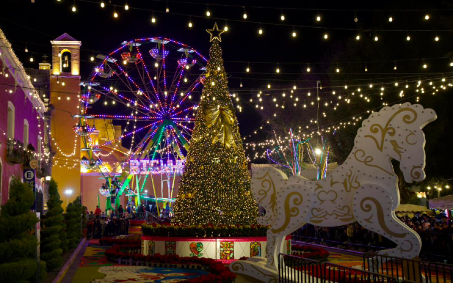 La jornada comenzó con la presentación del nacimiento instalado por la Fundación “Te Soñé” frente a Casa Huamantla, donde el Coro de Niños Cantores de San Luis Obispo deleitó al público con emotivos villancicos.